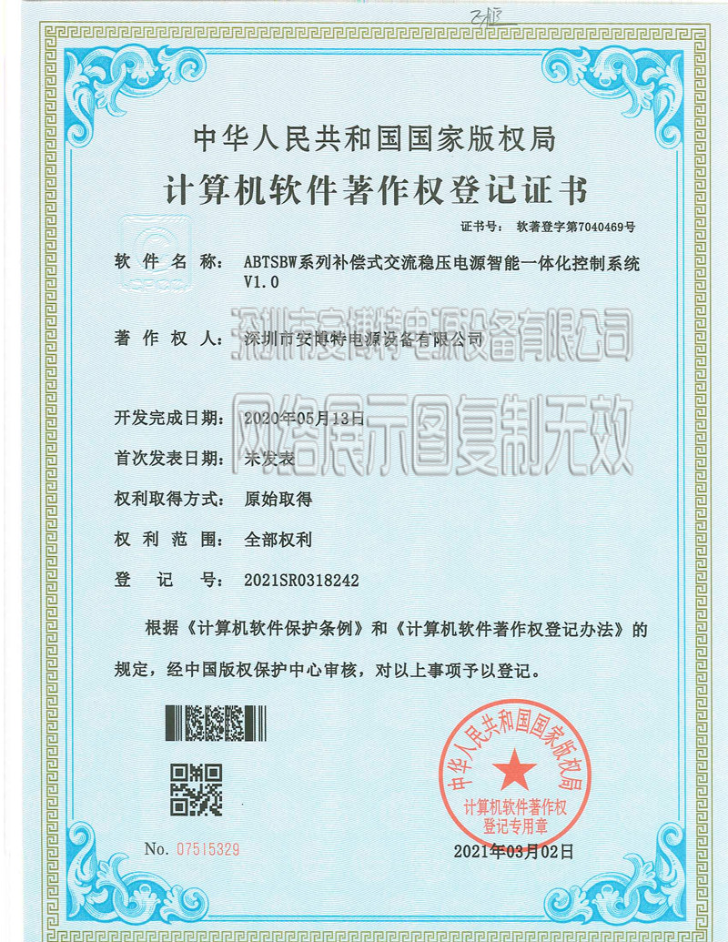 最具權(quán)威的三相穩(wěn)壓器證書,安博特專業(yè)生產(chǎn)交流穩(wěn)壓器,