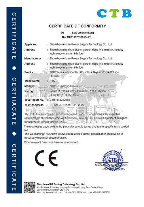 安博特具有行業(yè)品牌認證的穩(wěn)壓器證書,是一家專業(yè)生產(chǎn)